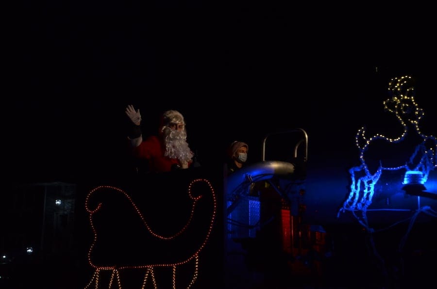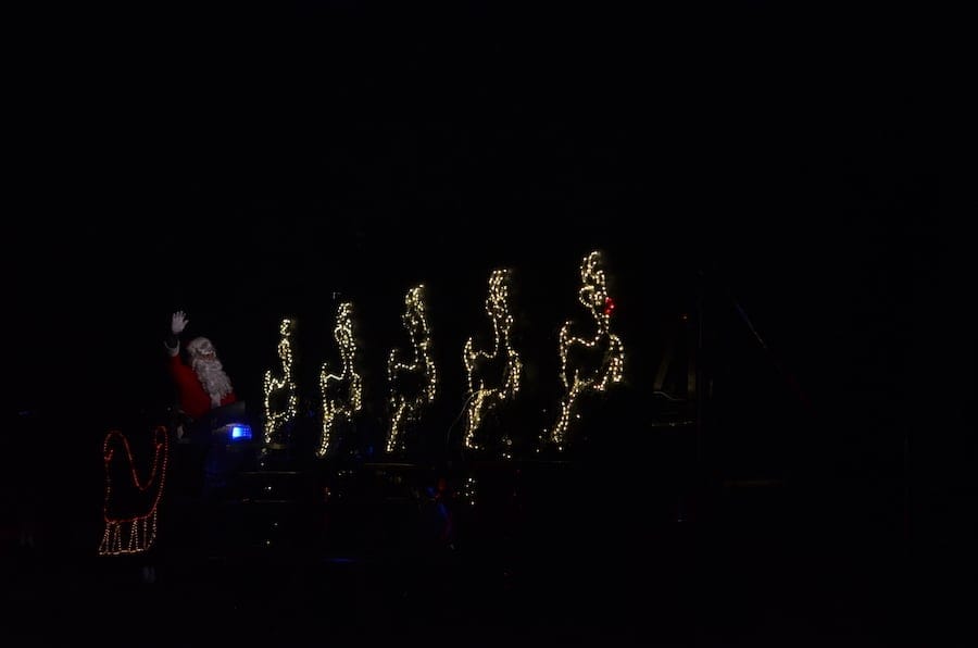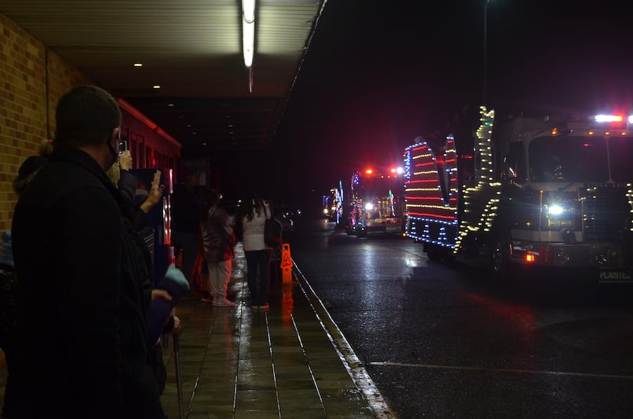 Top: Santa Claus waving from one of the several Smithtown fire trucks.