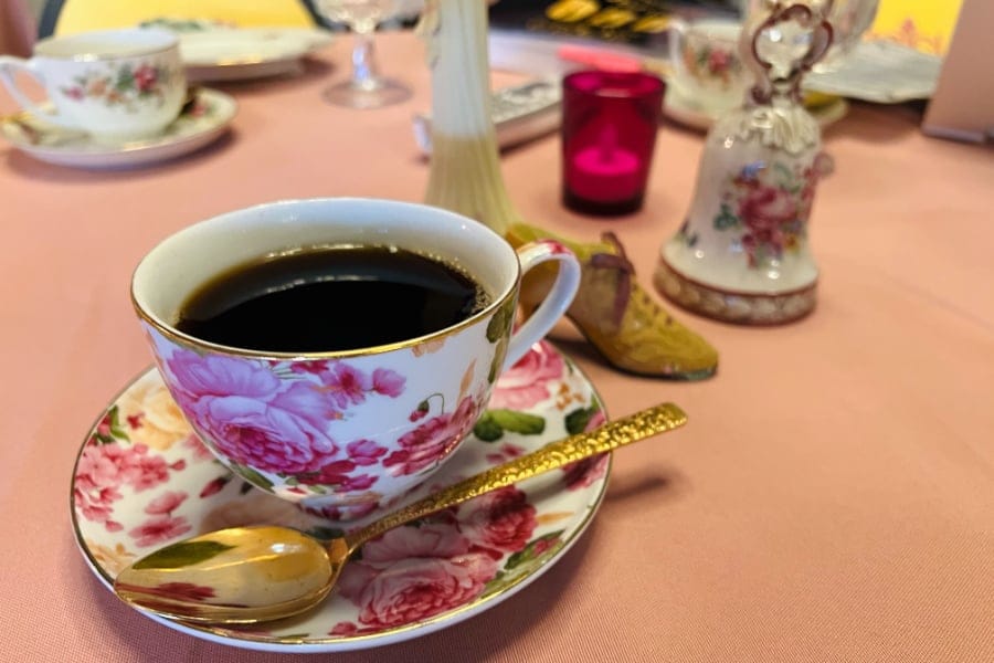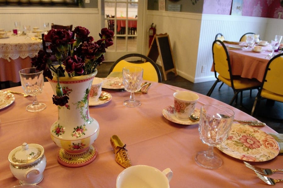 Elegance coats every wall and piece of furniture in McKernan’s special space. Each seat boasts its own individual tea pot and food tower.