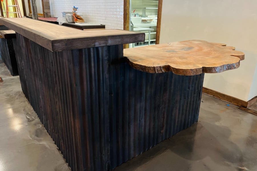 “We went with a vintage farmhouse look in here, hence the half-windmills,” he said gazing up at the freshly painted and adorned back room of the new Toast location. “It lent itself to that. I looked at this place, all the exposed wood, it reminds me of the Smokey mountains.”