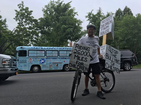 Votruba has logged thousands of miles traveling the country on a specially-decorated bus that declares his own group’s name and mission: One Million Acts of Kindness.