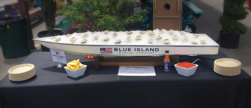 But Blue Island, which is based in West Sayville, won’t have to travel far for a special delivery on July 31, when local oysters for a Blue Island raw bar (picture below) will be featured with a six-course menu at the Island to Table fundraiser for Homegrown Change.