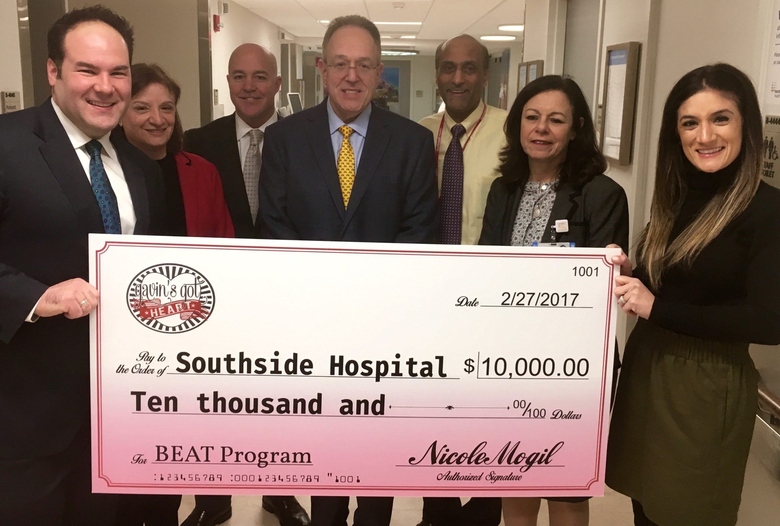 Southside Hospital’s heart health education program, known as BEAT, has just received a $10,000 donation from the local charity Gavin’s Got Heart.