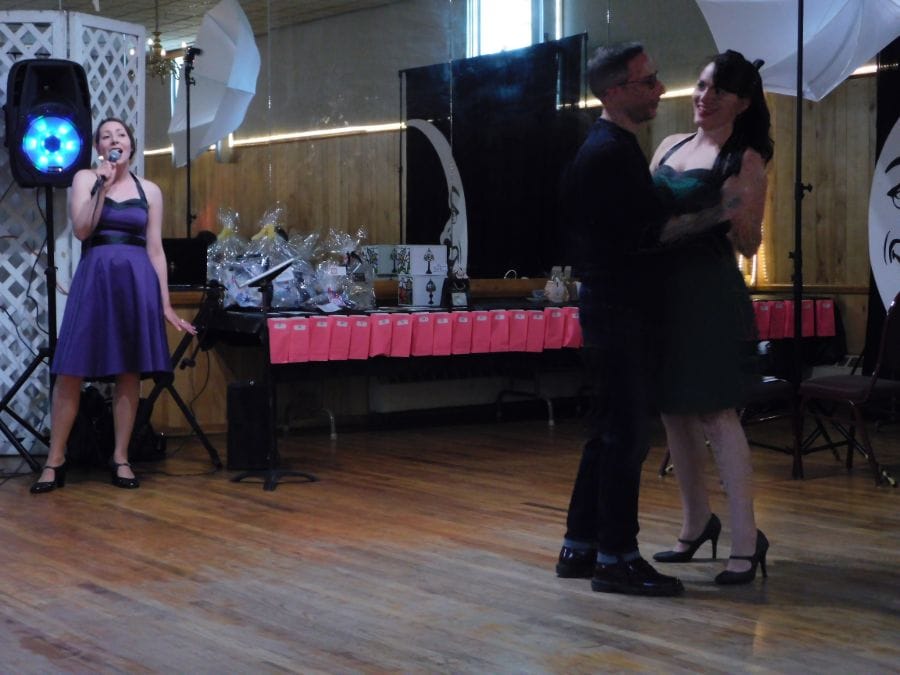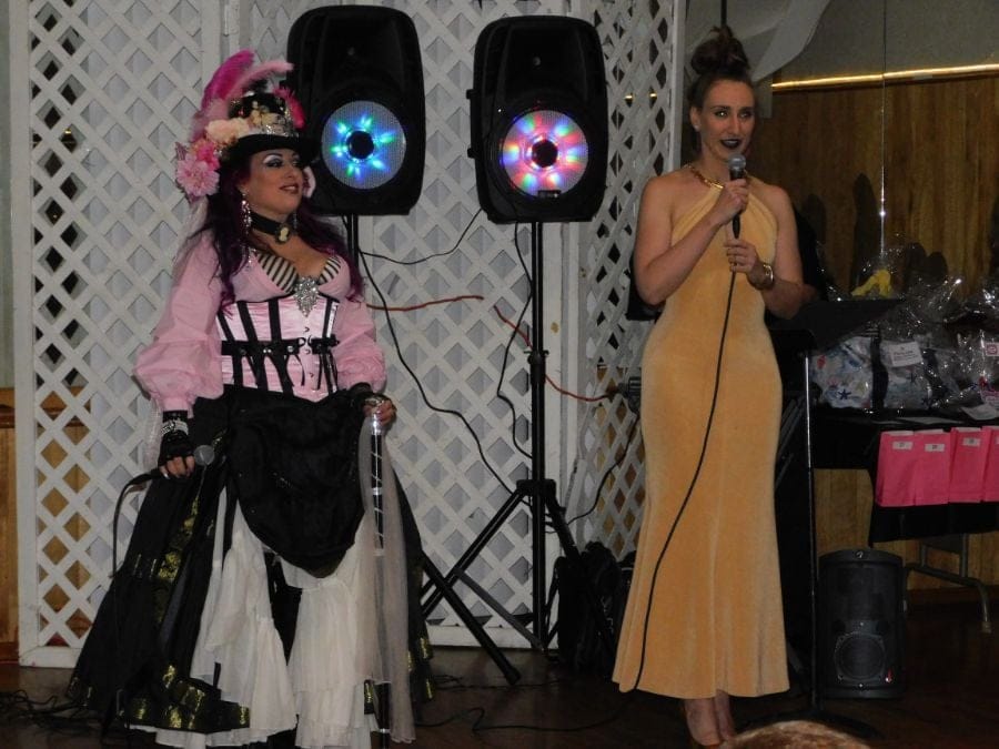 The fashion show featured eight models, dressed in outfits that illustrated the evolution of 20th century vintage style. Greater Sayville Chamber of Commerce President Eileen Tyznar was among those strutting up the runway. The event included live music from The Jewel Tones, food from local restaurants and raffle prizes donated by local businesses.