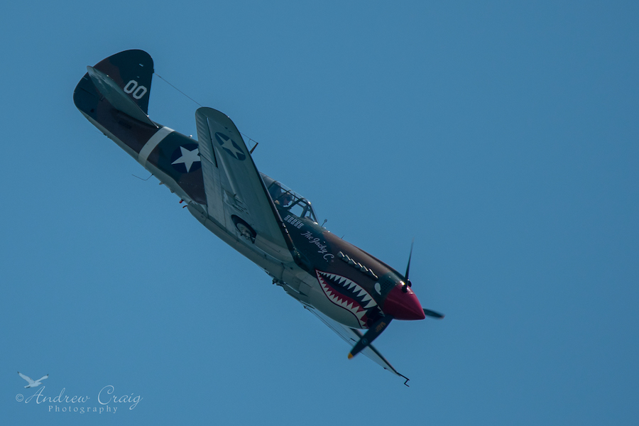 A Curtis P40 Warhawk in a dive at the practice for the Jones Beach Airshow