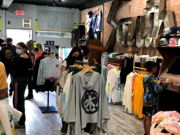 Customers flooded the shop early in the afternoon, then continued to stream in throughout the remainder of the day, enjoying the 1980s decor and the stylish and comfy clothing for all ages.
