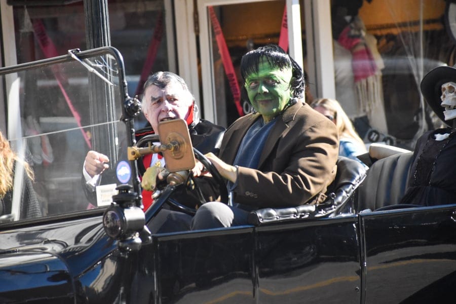 Some families wore group-themed costumes from such popular franchises as Ghostbusters, Minions, Star Wars and Marvel, while others paraded the streets in their spooky best, with many witches and werewolves on the prowl.
