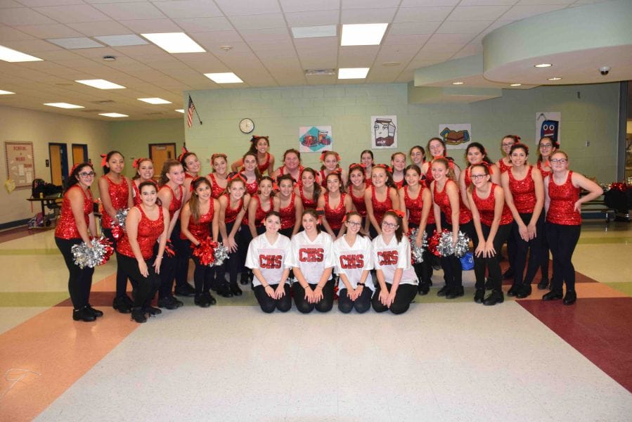 Connetquot High School’s kickline team paused to say cheese prior to the team’s performance at homecoming.