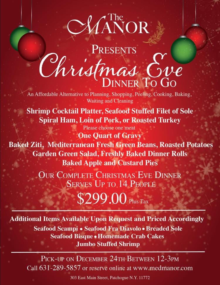 The Manor in Patchogue will be jumping this holiday season, with catered parties and special holiday dinners (to go) being offered up from Thanksgiving through New Year’s Eve.