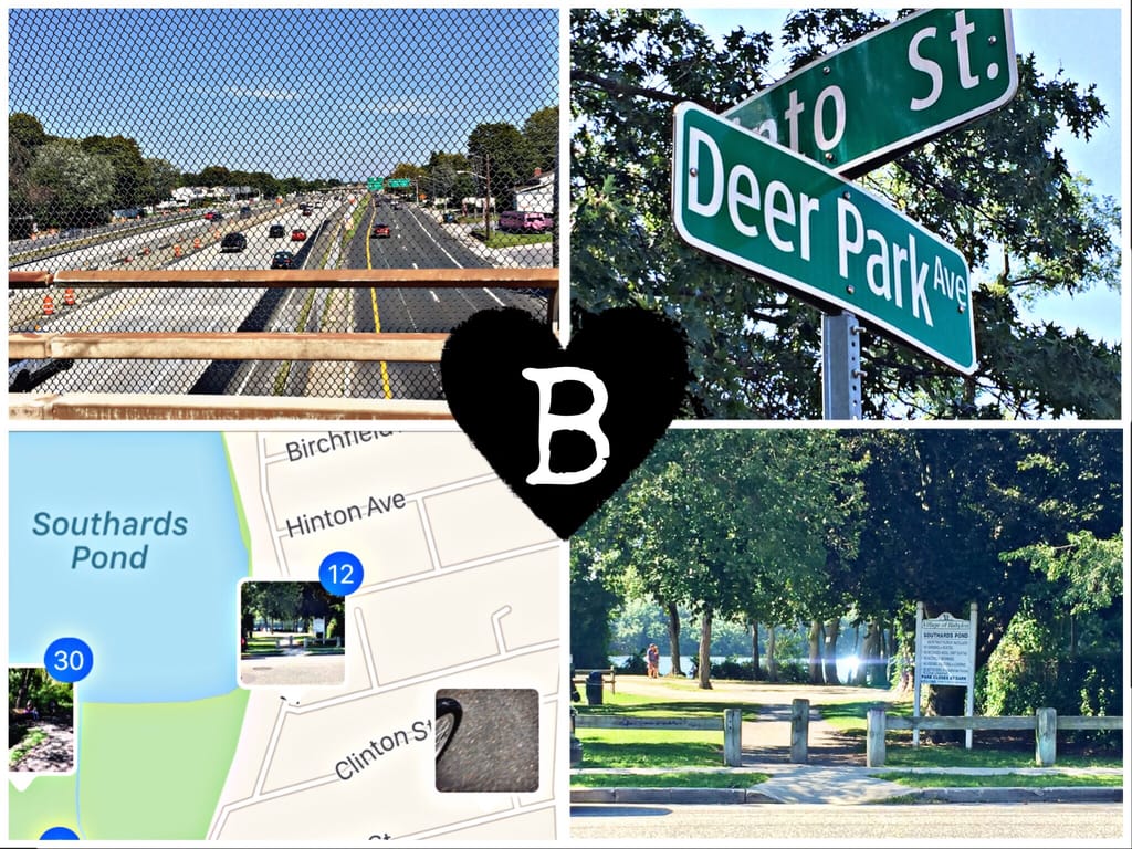 There are several entrances, but if you are coming from my neck of the woods, the Poet Section of North Babylon, it’s off DPA two blocks west to Pond Place, just south of Sunrise. (Map below.) You’ll know you’re close when quaint old homes begin to appear and you see the water peaking out from the backyards. If you’re driving, parking is available at Southards Lane and Pond Place.