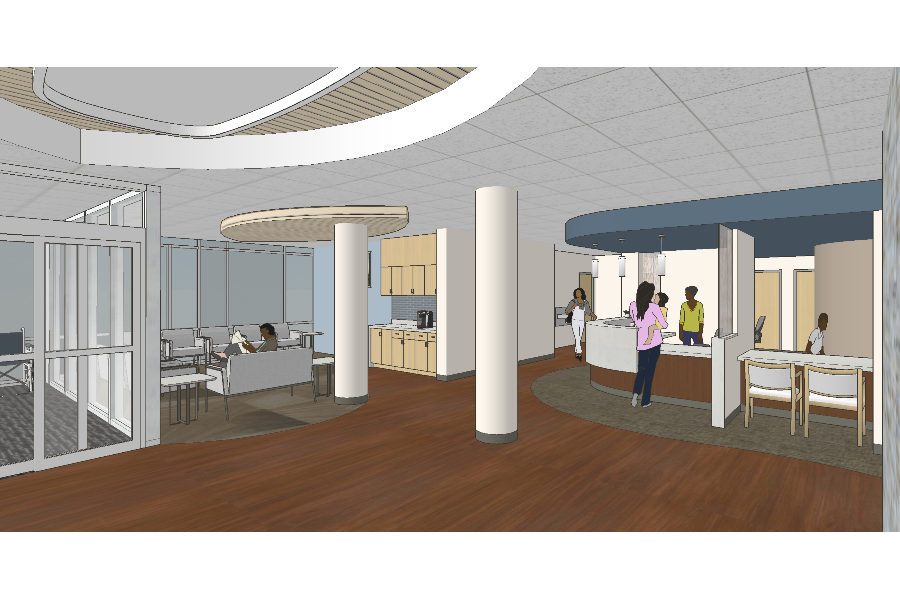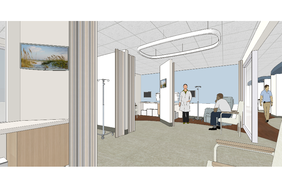 “This will dramatically improve the patient experience for cancer infusion services in a more convenient and contemporary outpatient setting with dedicated parking and a separate entrance,” reads the announcement. (Scroll down for interior renderings.)