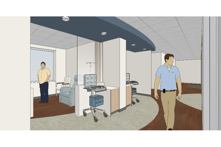 “This will dramatically improve the patient experience for cancer infusion services in a more convenient and contemporary outpatient setting with dedicated parking and a separate entrance,” reads the announcement. (Scroll down for interior renderings.)