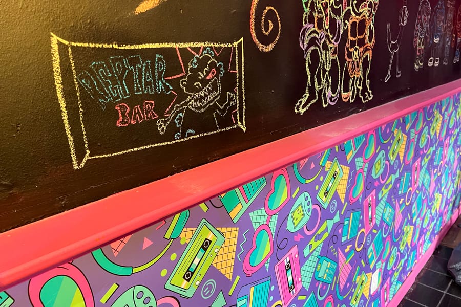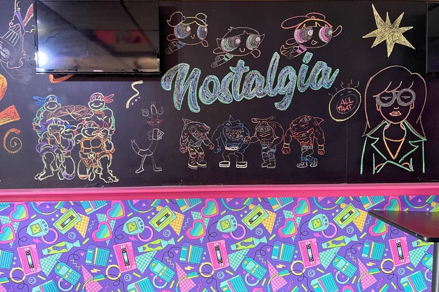 Beyond the retro artwork and references that adorn each wall, Nostalgia’s owners also cartoonified the old One Eye Jack menu.