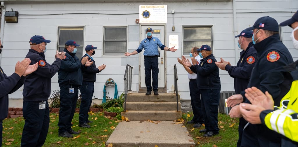 Islip Town Fire Marshal II Dan Karl — a volunteer with the Sayville Fire Department for more than 18 years — received an especially fun send-off upon his retirement this week.