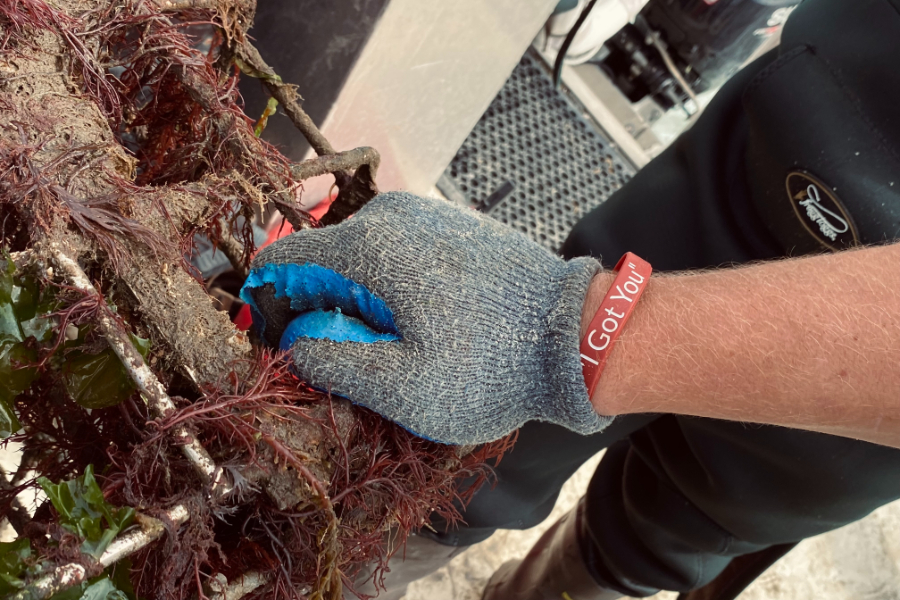 Rafalko and Casillas removed the farm’s “ghost gear,” 50 pound, seaweed and sponge covered empty oyster cages not needed until next spring. Meanwhile, Doutney tended to some of his babies: oysters grown to fulfill the foundation’s mission to restore the Great South Bay’s ecosystem.