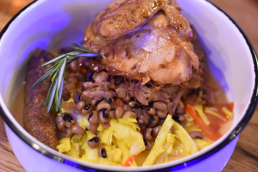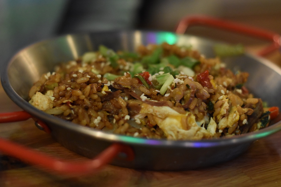 Slow Country Fried Rice: Beef brisket, green onion, Hatch chile, shishito pepper, ponzu wasabi vinaigrette