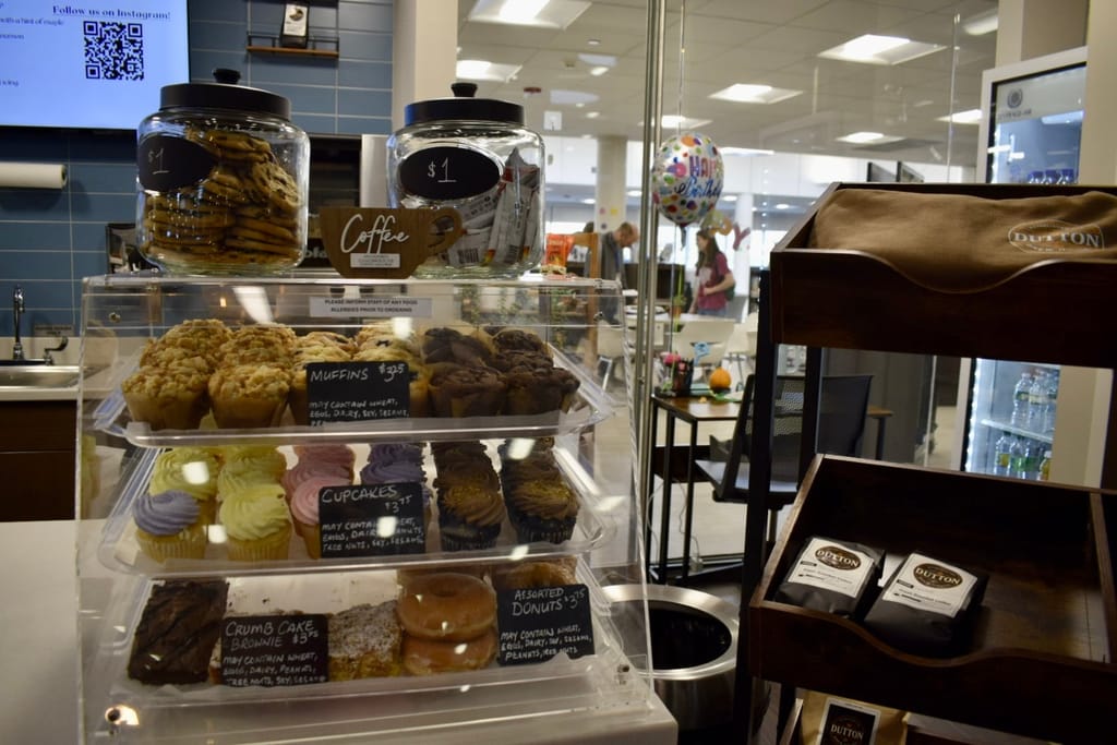 Today, the menu includes espresso drinks, refreshers, lemonade and iced teas, along with baked goods — including allergy-friendly options from a local gluten-free, vegan bakery.