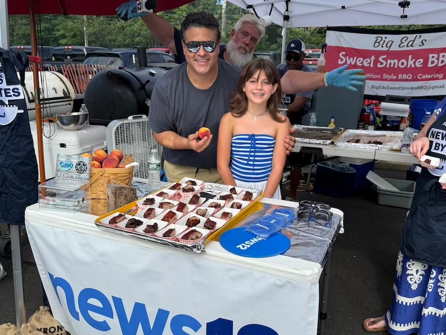 “Today we are cooking up some peach cobbler ribs,” said Ed Sweeting, the leader of a team called News Bytes. “I wanted to try something new. The apple-pie infused rib guy keeps winning this so I had to try something different. It’s a little peach combined with a little heat. Everybody seemed to be loving them.”