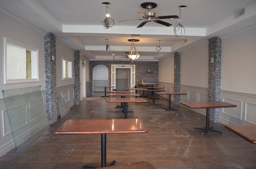 The front half of the restaurant will be the hostess stand and waiting area, while the middle half will have pub-style tables that seat around 20 people or less at COVID-compliant capacity.