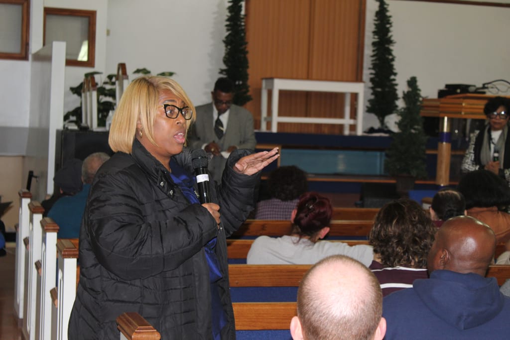 Some 50 Amityville community members gathered at Prayer Tabernacle Church of God in Christ on Sunday to discuss how to prevent the potential closing of the district’s Northeast Elementary School.