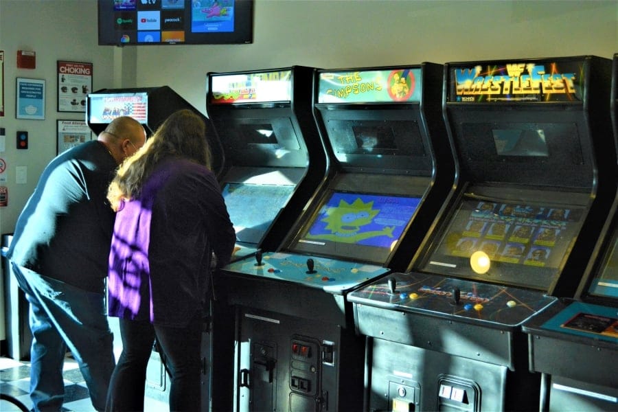 Along one wall are coin and cash-operated classics, including Mortal Kombat, Donkey Kong and Poccia’s personal favorite childhood game, Wrestlefest.
