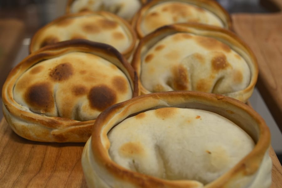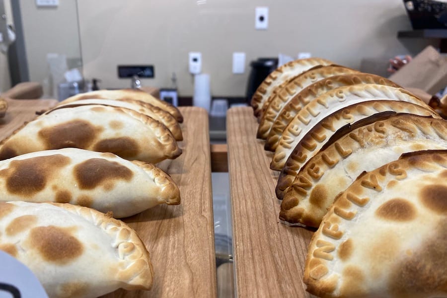 Mourelle’s empanadas are baked, not fried, and filled with various meat and vegetarian fillings: chicken and cheese, spicy carnitas, beef classico, caprese, and “Americanized” fillings, such as her Thanksgiving empanada, chicken pot pie, and hamburger.