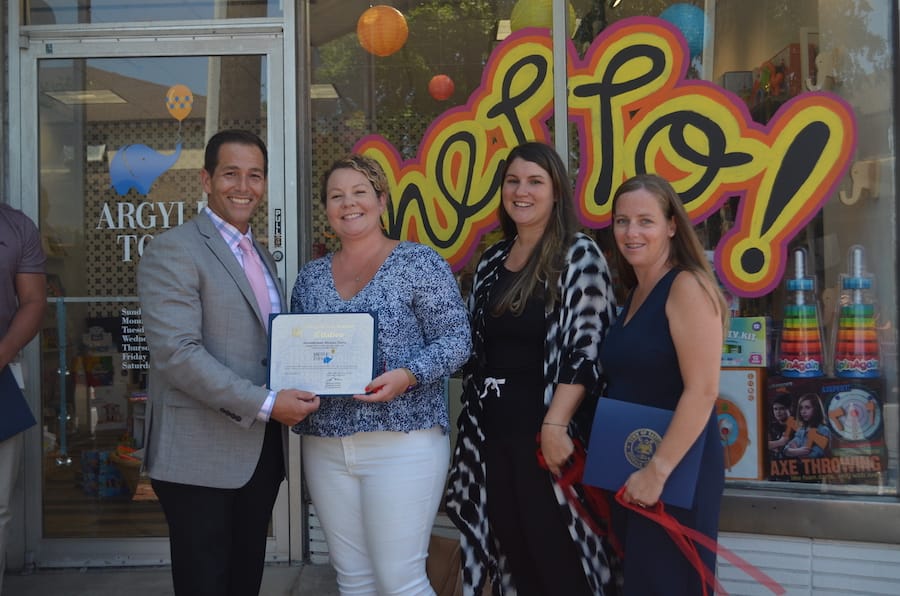 The women-run boutique toy store that opened last month in Babylon Village has just received its official warm welcome.