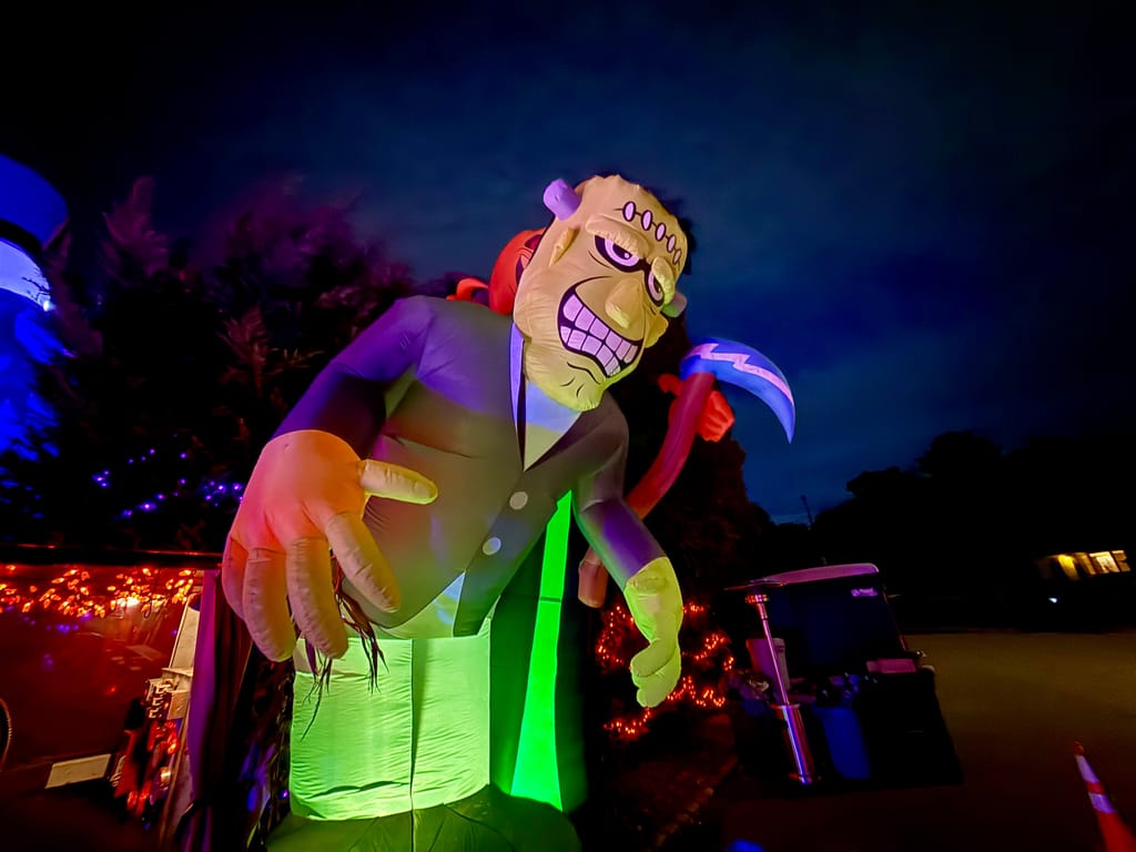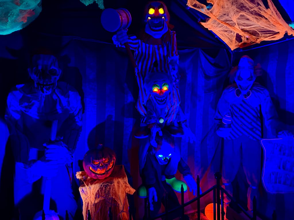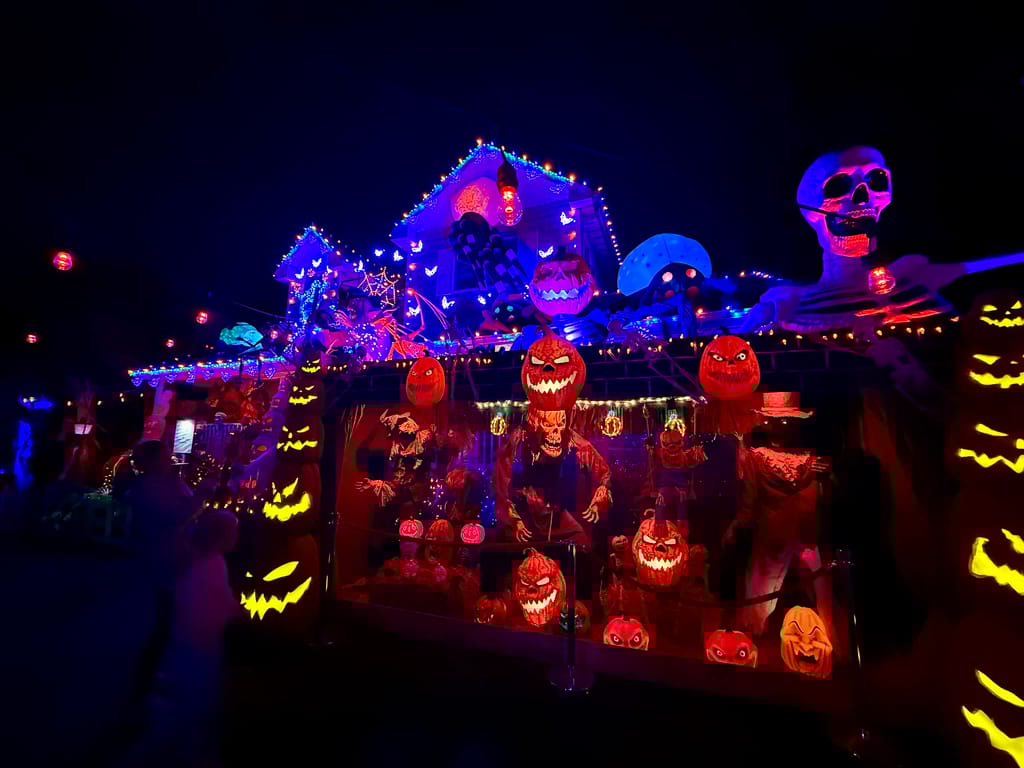 His front yard display at 101 Wilson Street is no ordinary haunted house. We’re talking more than 20,000 LED lights, 50 animatronics, life-sized characters, themed areas, fog, and sound effects — a full-scale, scream-inducing experience that changes every year.