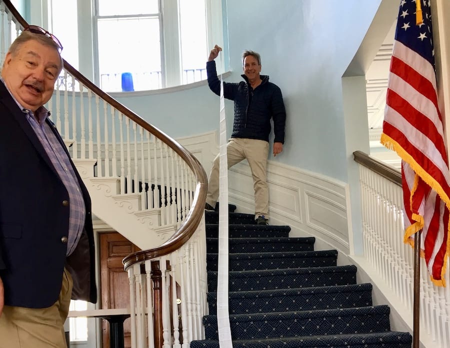 Top: Babylon Rotary Club’s Scott Lockwood holding the long receipt from Restaurant Depot. (Courtesy photo)
