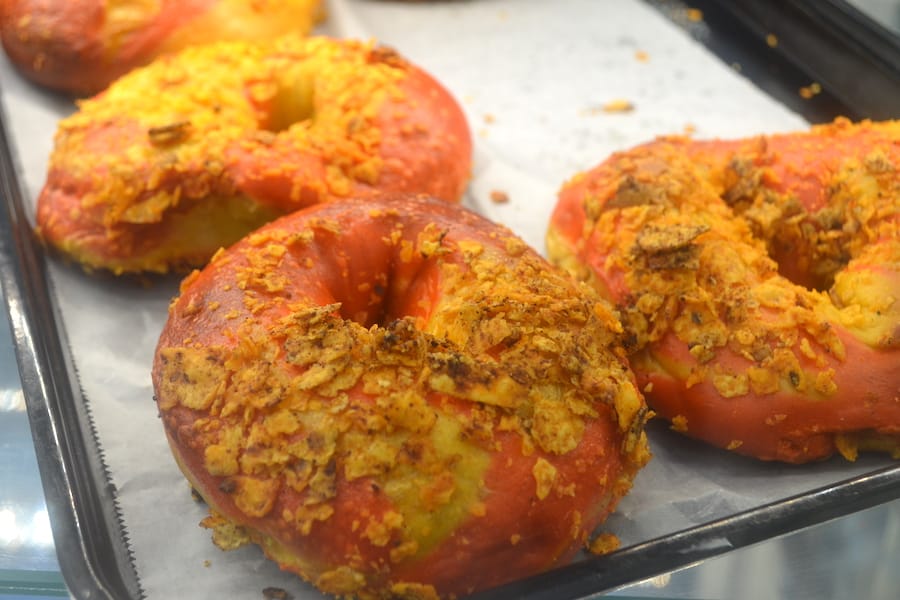 This includes bagel flavors like their popular “Beans Everything” bagel, a signature Doritos-encrusted bagel that visitors order with egg sandwiches or with just plain cream cheese or butter, Budani said.