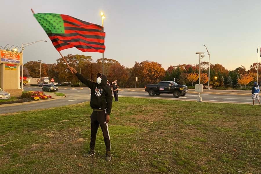 In addition to the various Black Lives Matter flags typically seen at the Shirley corner, a half dozen protesters waved Biden-Harris flags. Yesterday’s event came the day after Kamala Harris became the first woman of color named Vice President-elect.