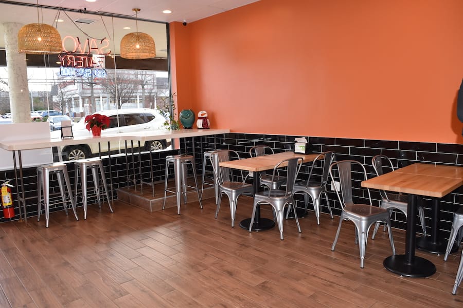 Savor Eatery, which offers takeout, has two tables and counter seats inside.