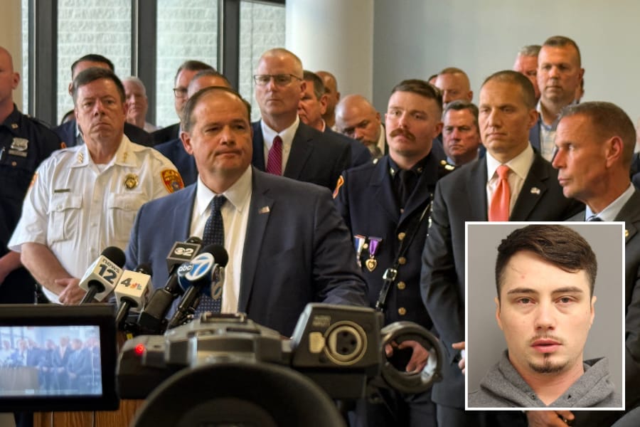 According to court records, Gallagher was conducting a traffic stop on the Long Island Expressway near Exit 58 when Fisher sped by in a 2021 Ford Mustang at about 100 mph. Gallagher attempted to pull Fisher over, but Fisher fled, weaving between lanes before striking the officer’s vehicle.