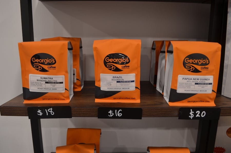 The menu includes fresh coffee and espresso-based drinks, teas, sandwiches, paninis, fruit smoothies, bagels, croissants, muffins and other baked goods sourced locally in the Huntington area.
