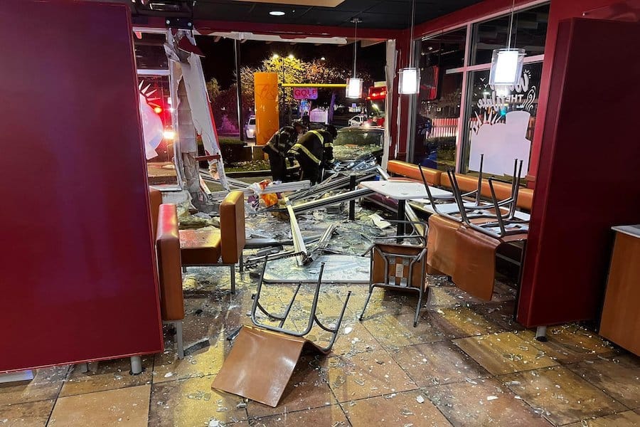 The three employees inside the Taco Bell at the time of the crash were not injured.