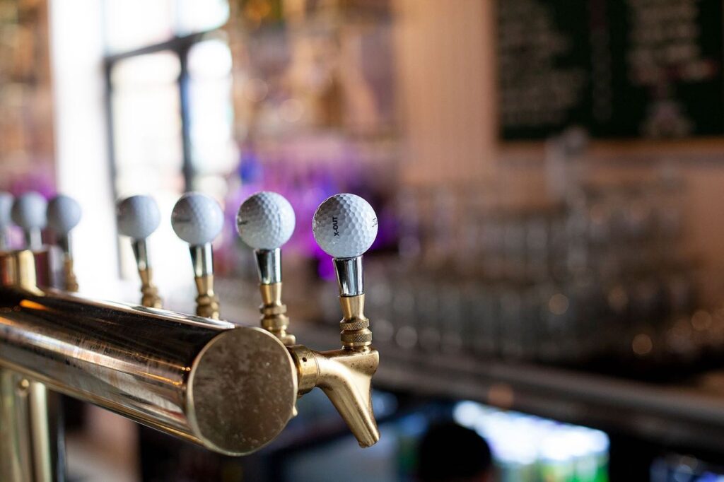 (Or chasing your ball into the woods.) It’s also got a bowling feel, where you can have fun, get a little excercise, but also order up a pitcher of beer and some grub.