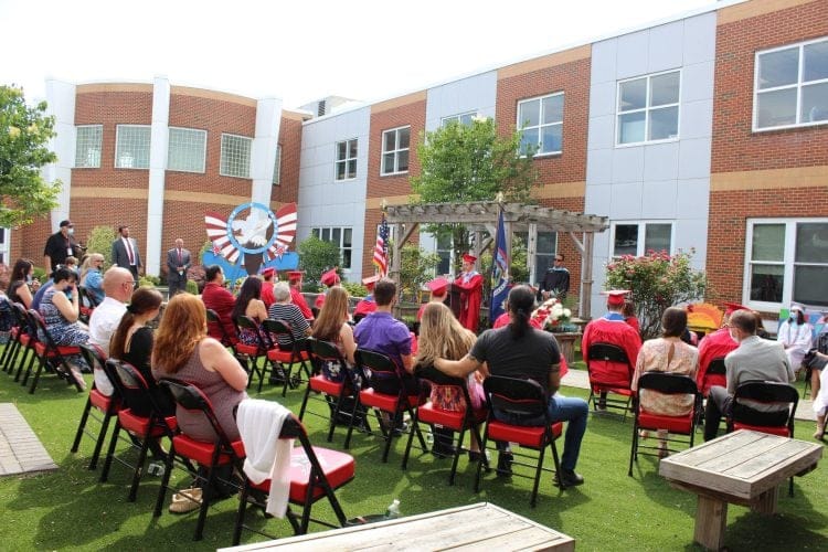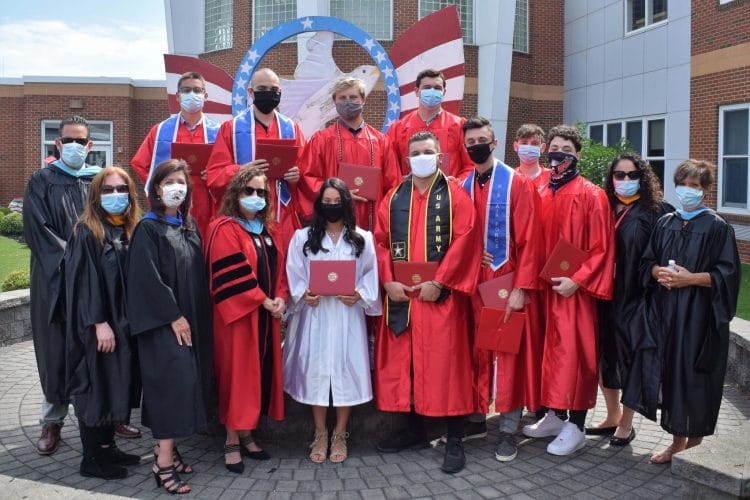 Connetquot High School hosted a mini commencement ceremony for nine seniors who are either heading off to the military or starting their collegiate athletic careers before the Class of 2020’s official graduation event later this summer.