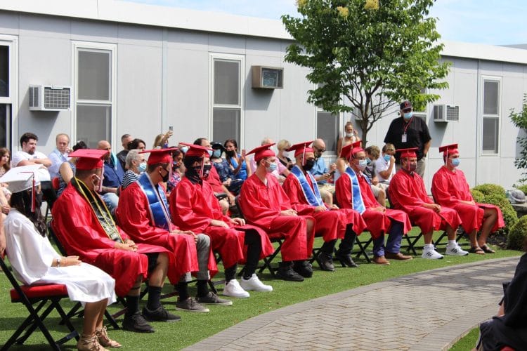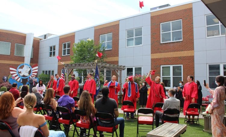 Friday’s celebration was an intimate gathering in the school’s courtyard. Upon leaving the ceremony, the graduates were greeted on the street by a crowd of their classmates, family and friends.