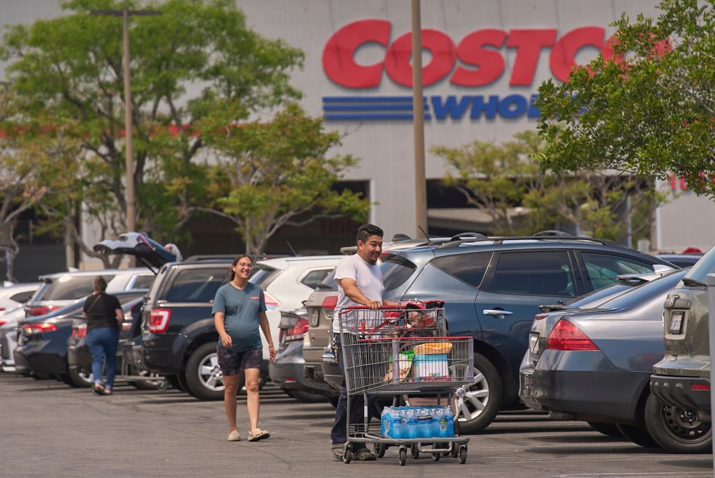 Top: People shop for supplies at Costco Wholesale store in Burbank, Calif., on Thursday, April 10, 2025. (AP Photo/Damian Dovarganes)