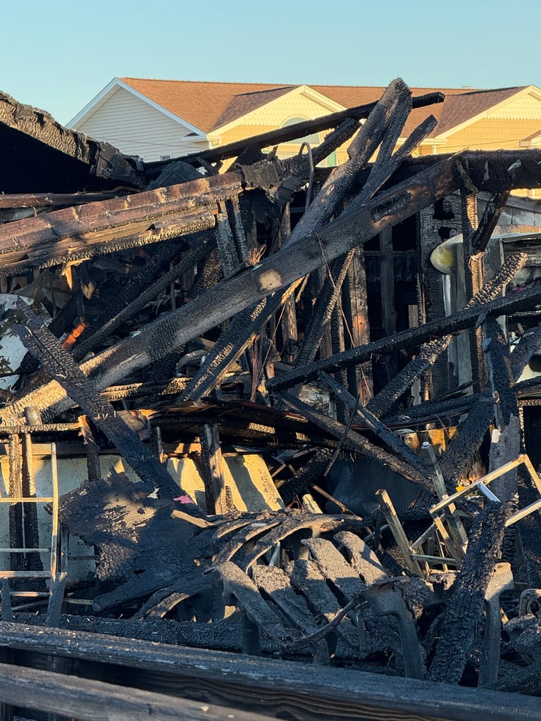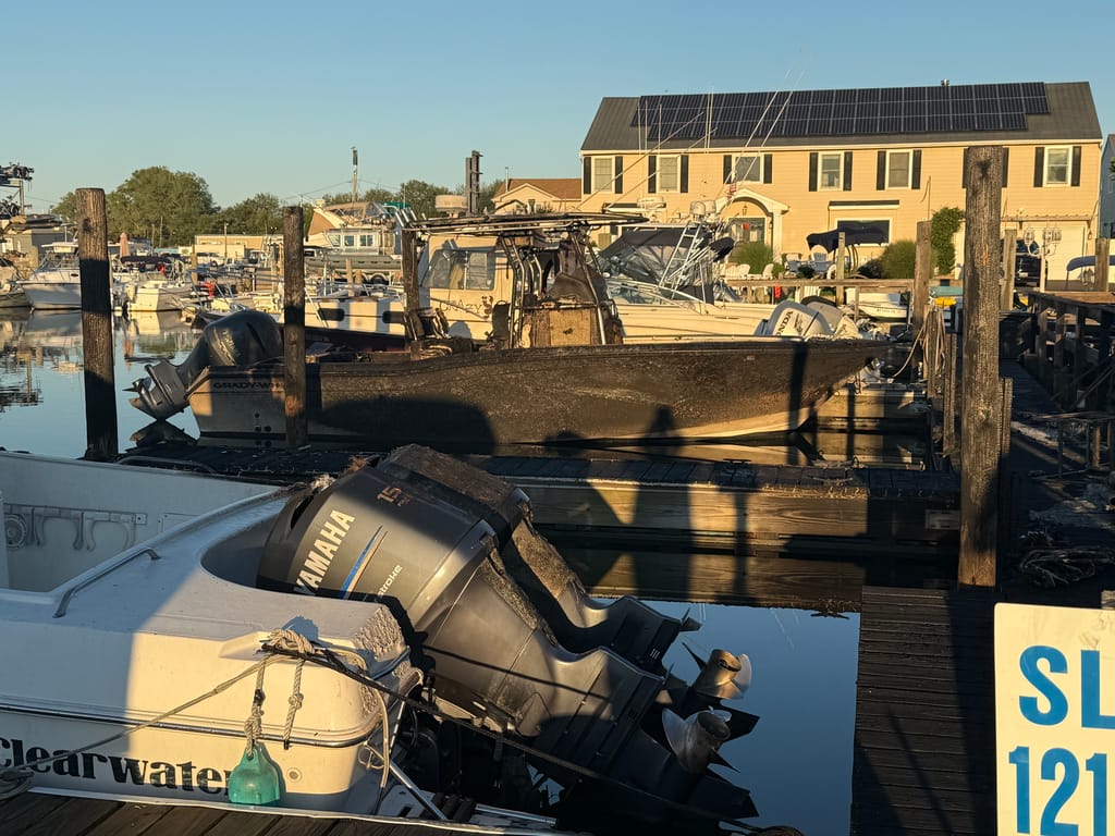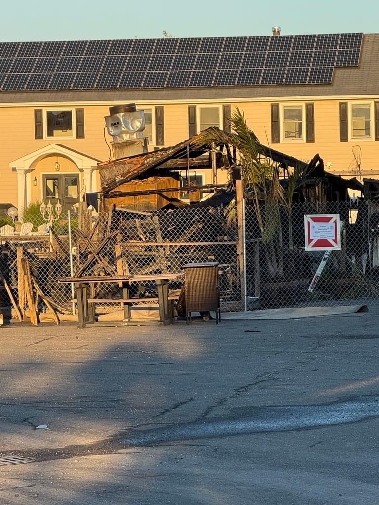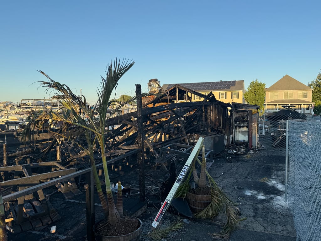 Greater Long Island was on the scene capturing photos of the destruction. The damage is stark: the once-bustling eatery is now a blackened shell, with boats scorched in the slips beside it, still tied to moorings.