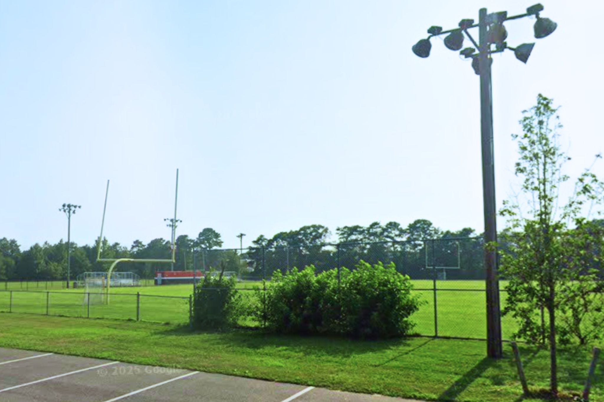 Top photo: The football field located across the street from 49 Richmond Ave., where a gun was recovered following a street fight in front of the house (Google Maps).