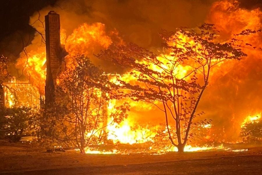 Top photo: The early morning fire destroyed the home at 215 Waterford Road and claimed the life of its sole occupant, an elderly man (source: Bohemia Fire Department).