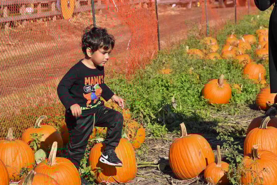 Everyone’s favorite is the pumpkin patch, which has homegrown pumpkins on the vine, as opposed to pumpkins being trucked in from Pennsylvania, which is what you’ll find at other farms.