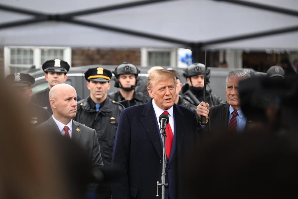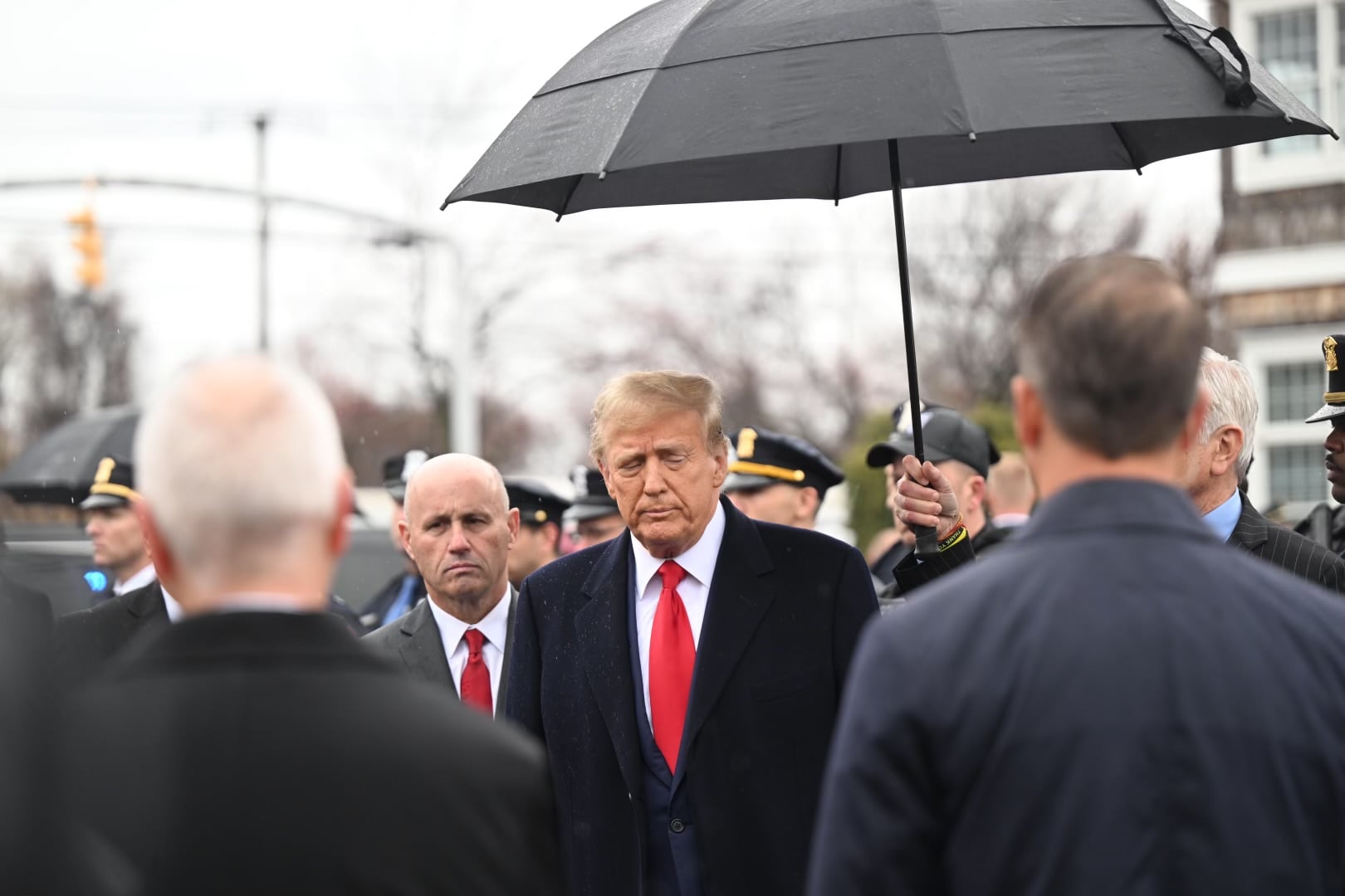 And just minutes into the services, former President Donald Trump arrived to pay his respects and huddle with the grieving family inside the South Chapel at Massapequa Funeral Home.