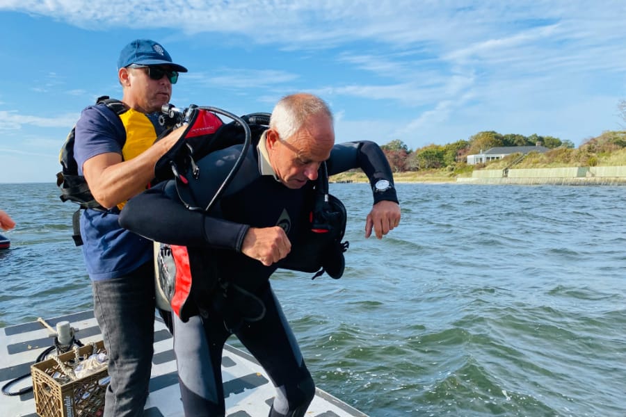 To retrieve Saturday’s sample, FOBB called in Gregg Rivara, a short slender man with 40 years of scuba diving experience and an affinity for marine life since childhood, from the Cornell Cooperative Extension of Suffolk County.