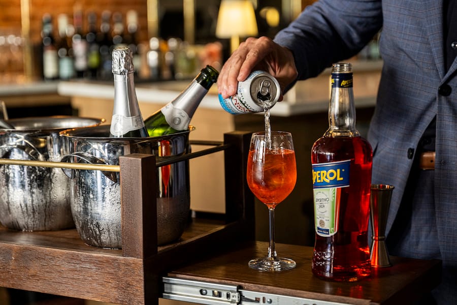 Gioia, as its name suggests, is all about the joy of being at the table. Here you will discover classic Italian cocktails crafted tableside, a traveling cheese trolley, and baby gem Caesar salads tossed in front of you. In full view in the front of the restaurant, fresh pastas will be made all day, prosciutto is cut on a hand cranked Berkel slicer and mozzarella is hand-pulled and cut to order.