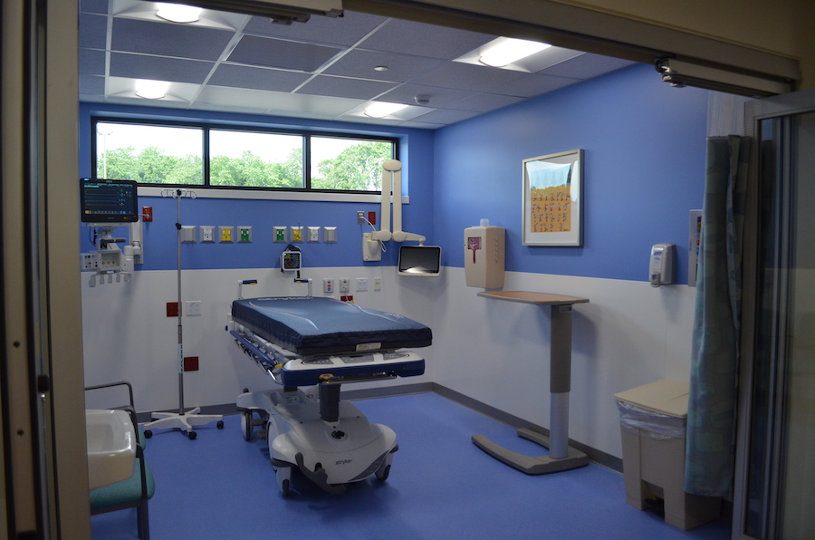 The unit features 12 treatment bays, two of which are in isolation rooms, and a large waiting room for pediatric patients and their families.