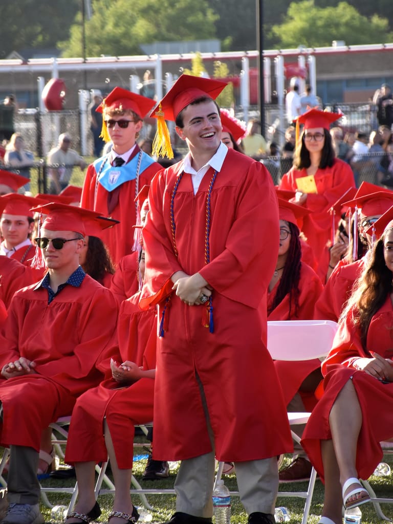 Members of East Islip High School’s Class of 2022 — dressed in traditional red caps and gowns — proudly marched across Sal Ciampi Field at Boomer Esiason Stadium for the school’s 95th commencement ceremony.