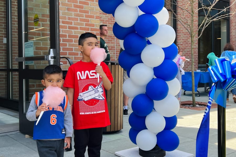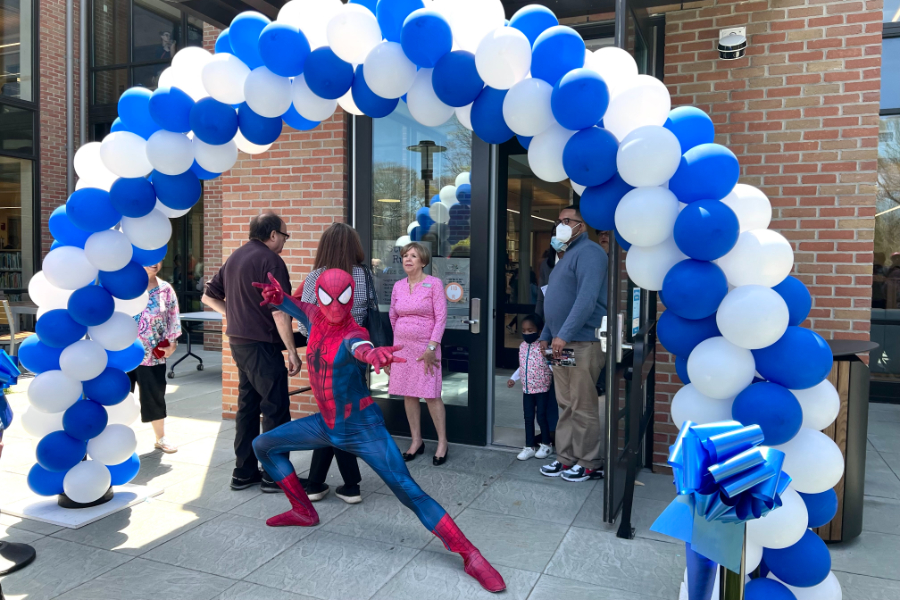 As elected officials, library staff and the library’s board of trustees stood before the crowd, the Sound of Long Island chorus sang, a food truck served ice cream and pretzels and Spiderman drew the attention of knee-high attendees.