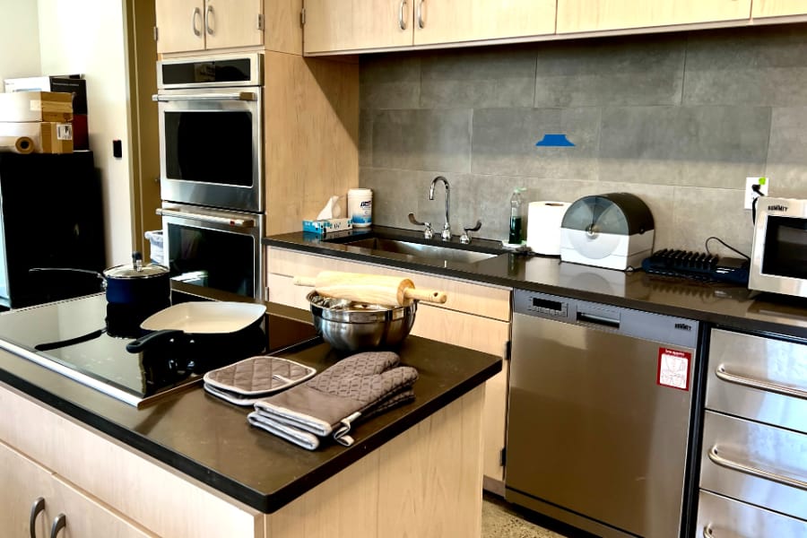 “The teaching kitchen is definitely a highlight,” Crosson said. “The café to serve the public, the sewing machines, … the 3D printers, all new. The meeting rooms, the live streaming, the sprung wood floor to do fitness, the auditorium with over 100 seats [and movie screen], all new.