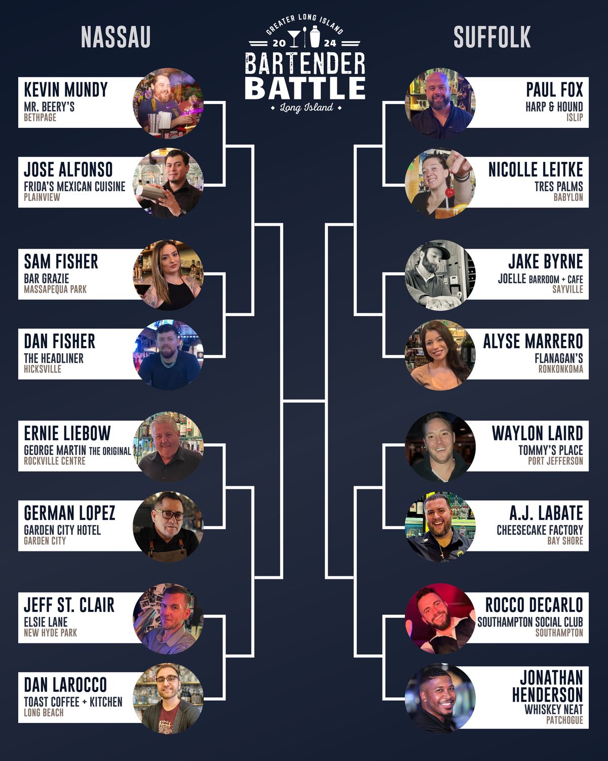 Those last two bartenders — one from Nassau and one from Suffolk — will then square off live at a huge Long Island Finals bash being planned by Lily’s in Babylon.